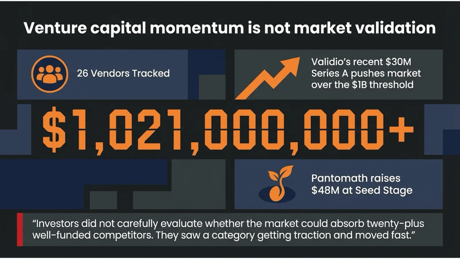 Venture capital investing runs on narrative momentum. When a category starts generating headlines, investors pile in, often regardless of whether the underlying economics justify the capital being deployed. The VC pile-on in data observability and data quality began around 2022 and accelerated through 2023. Investors did not carefully evaluate whether the market could absorb twenty-plus well-funded competitors. They saw a category getting traction and moved fast.