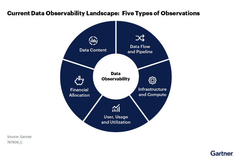 In her view, Data Observability provides five critical observations: observing data content, observing data flow and pipeline, observing infrastructure and compute, observing users, usage, and utilization, and observing financial allocation. Many tools cover some of these five observations individually. Still, these tools focus on certain areas and do not provide holistic and end-to-end data landscape and pipeline visibility. Data Observability platforms fill the gaps and consolidate all available information to create visibility. Most vendors focus on the first two observations — observing data content and data flow.
