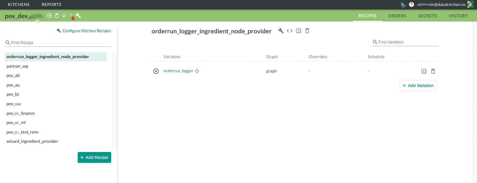 Pipeline orchestrations with associated tests become reusable components that members of the data team can share with each other through a virtual environment called a Kitchen. The Kitchen environment is a workspace; a place where data professionals do their work. It allows data scientists, analysts and engineers to share data pipelines, along with their tests, with each other. The data pipeline appears in a library of reusable components, which can be used or modified. The tests that everyone develops are also shared and as the tests grow in number, quality improves. Below is a screenshot of a DataOps Kitchen UI.