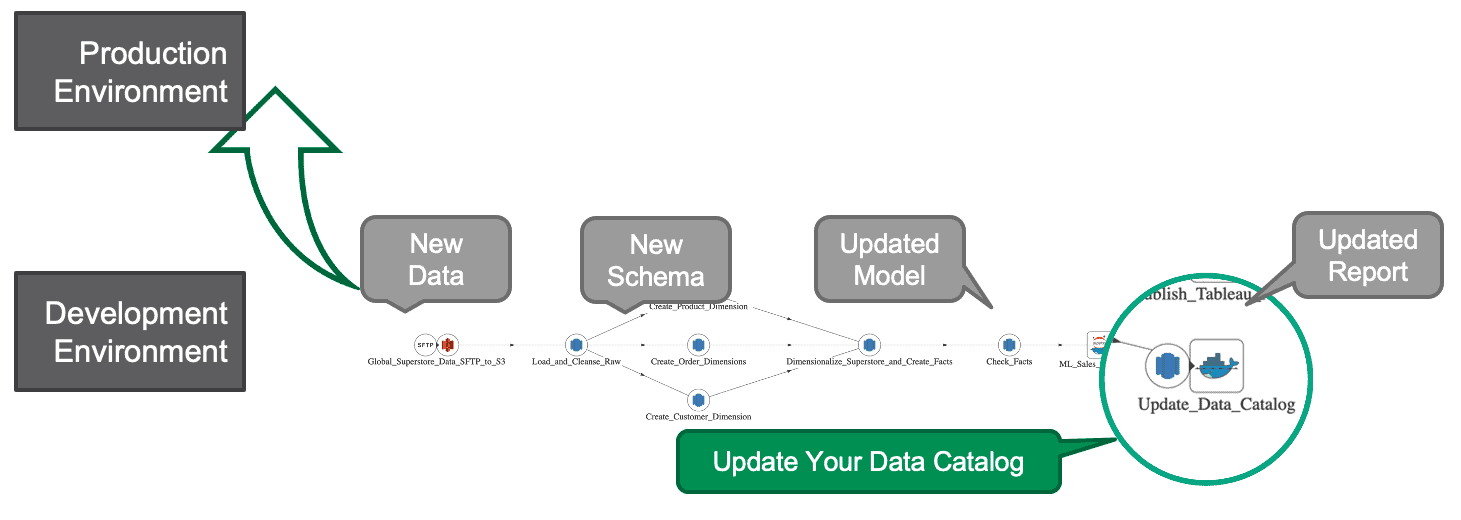 Figure 1: The orchestrations that implement continuous deployment incorporate DataGovOps updates into the change management process.