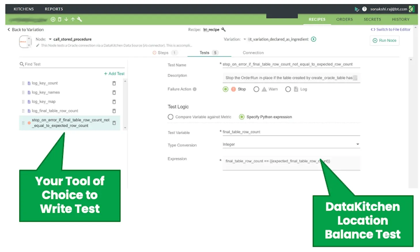 Figure 5: The DataKitchen UI enables data professionals to easily test inputs, outputs, and business logic at each stage of the data pipeline without having to learn each and every tool that operates on data.