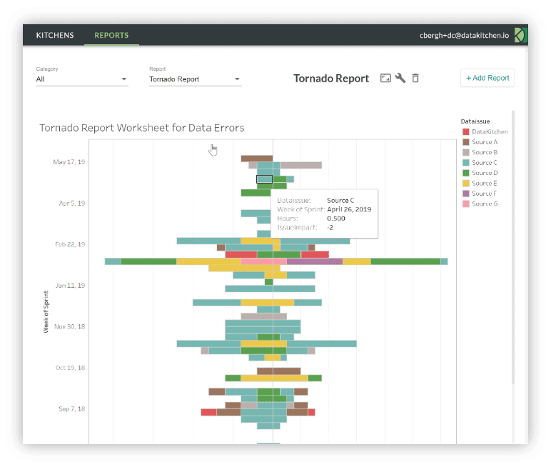 Figure 6: The DataKitchen Platform provides process observability reports like the Tornado Report which tracks errors and resolution time per data source.