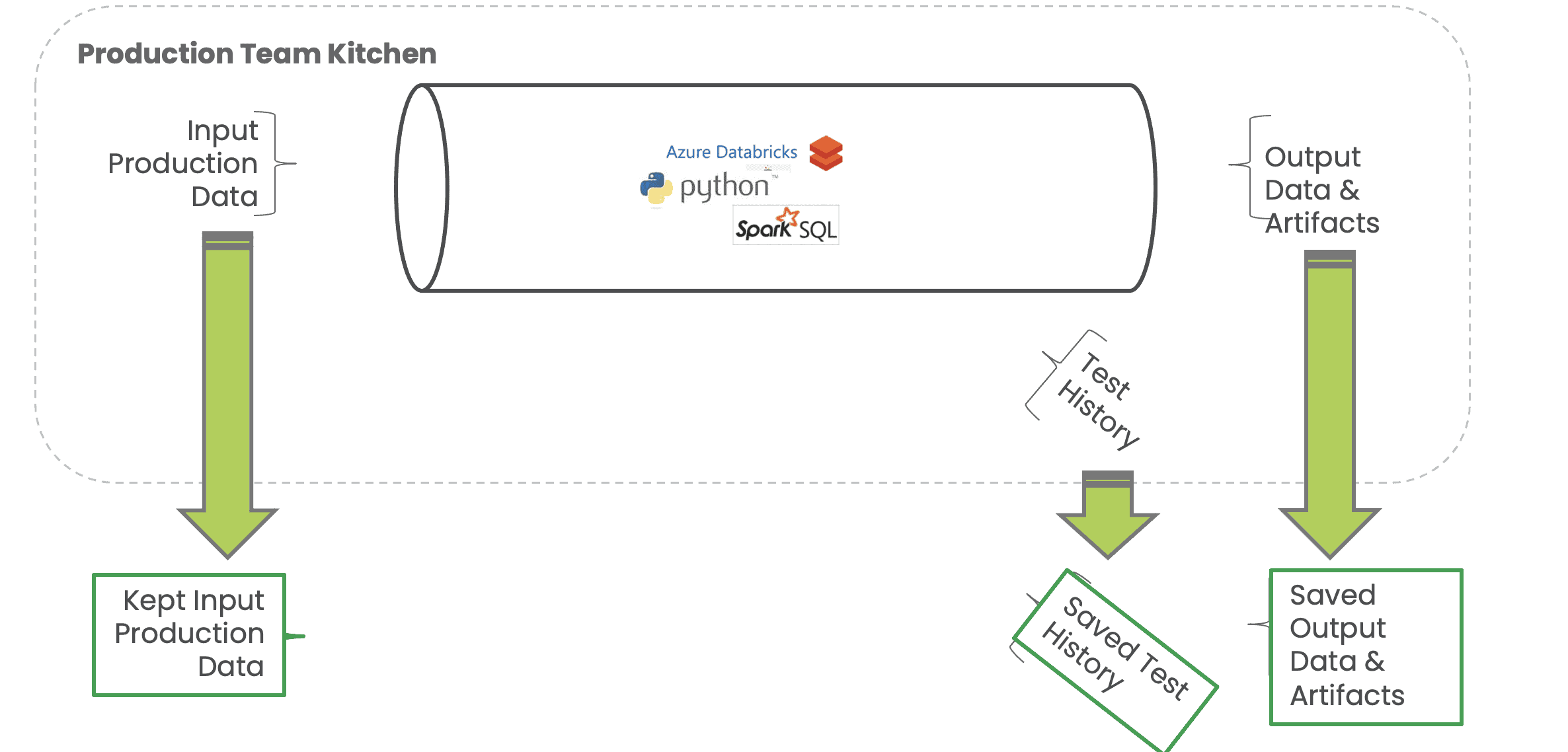 Figure 10: A clone of the production environment for development purposes must include the input data, test history, logs, output data and other artifacts available in production.