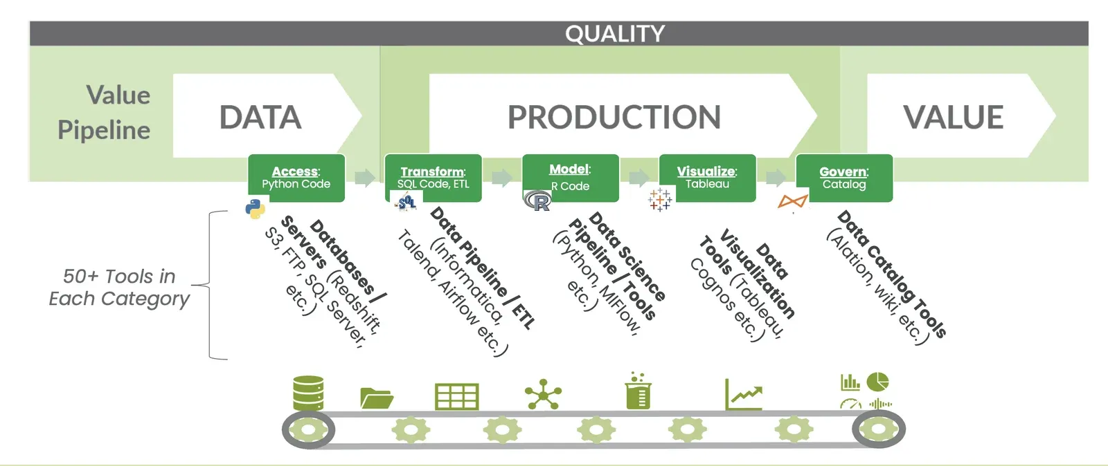 Figure 1: The process of transforming raw data into actionable business intelligence is a manufacturing process.
