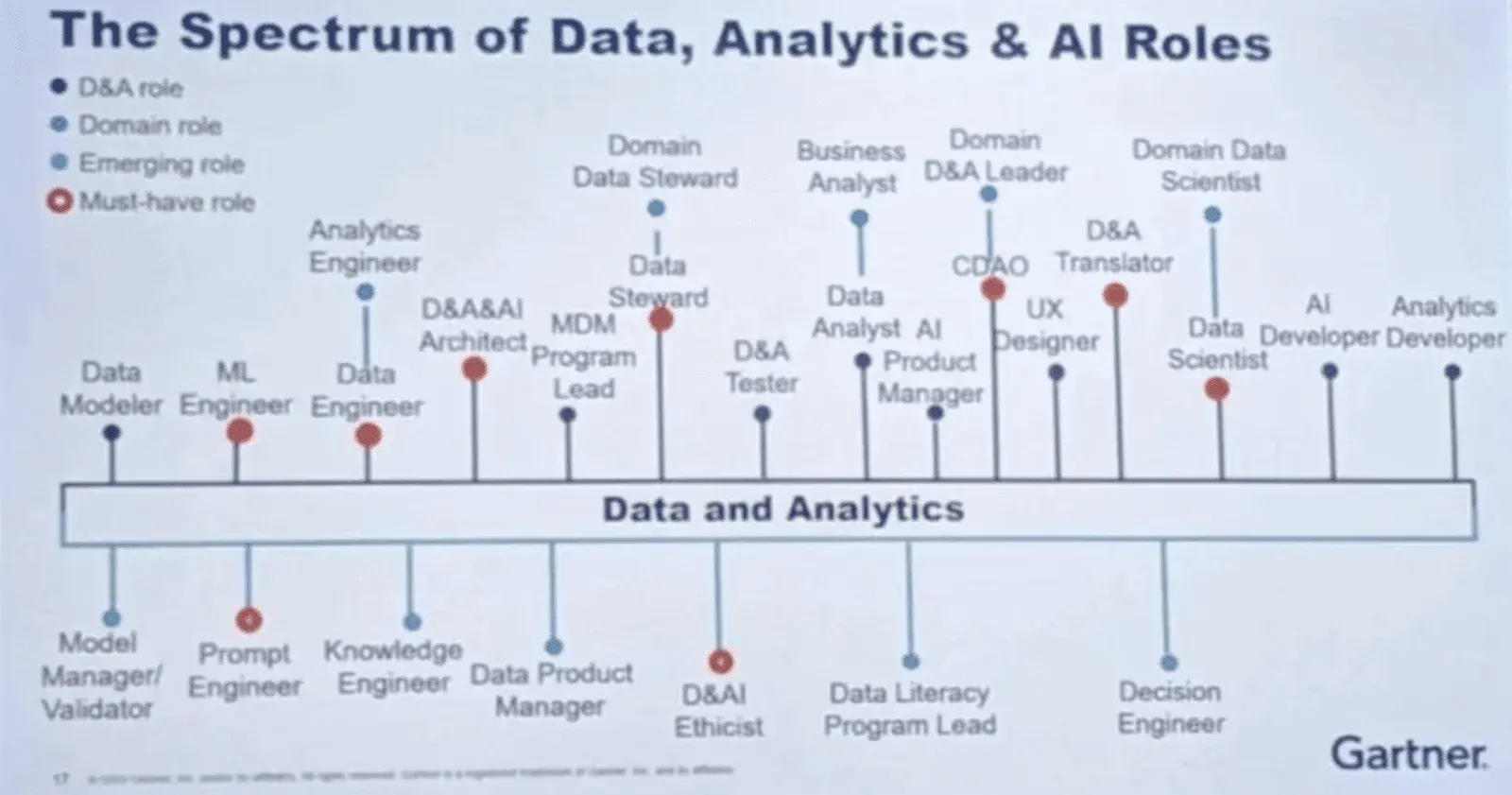 A modern data team is a mosaic of specialized roles. According to Gartner’s breakdown of analytics and data roles, data teams now span far beyond traditional data engineering and business intelligence (BI) analysts. We have ingestion engineers, analytic engineers, stewards, governors, modelers, owners, scientists, product managers, compliance officers, and executives. This proliferation of roles is necessary—it reflects the growing complexity and business criticality of data. But it also introduces a problem.