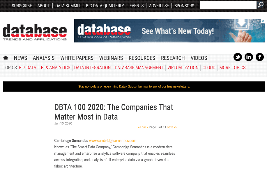 DBTA’s 100 Companies That Matter Most in Data