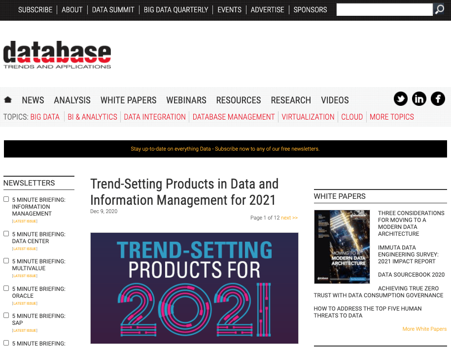 DBTA’s Trend-Setting Products in Data & Information Management for 2021