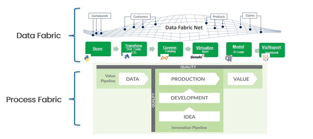 Figure 2: A process fabric begins with a DataOps superstructure that connects your existing tools and orchestrates your data pipelines and workflows.
