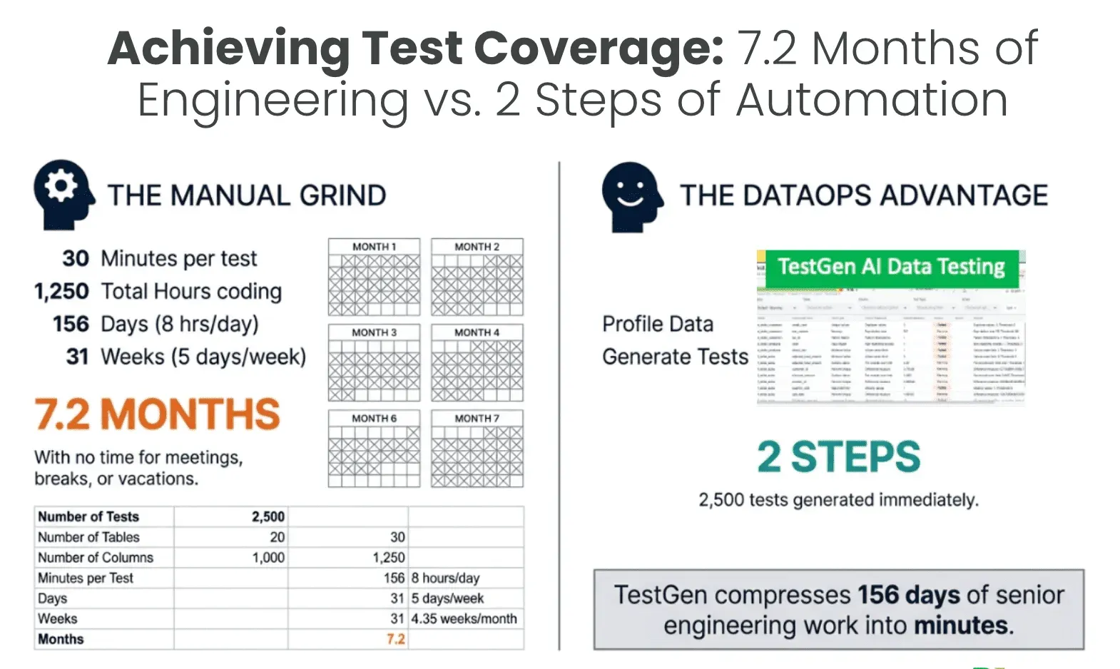 Data testing is how you manage AI risk. If Claude goes down the wrong path for 30 minutes, the tests catch it. Nothing ships until the tests pass. Your test suite is your safety net and your teacher simultaneously. DataKitchen’s open-source TestGen is built exactly for this: it generates thousands of data quality tests automatically from your schema and data profile, giving Claude the feedback loop it needs to work autonomously without requiring your team to hand-write every test case.