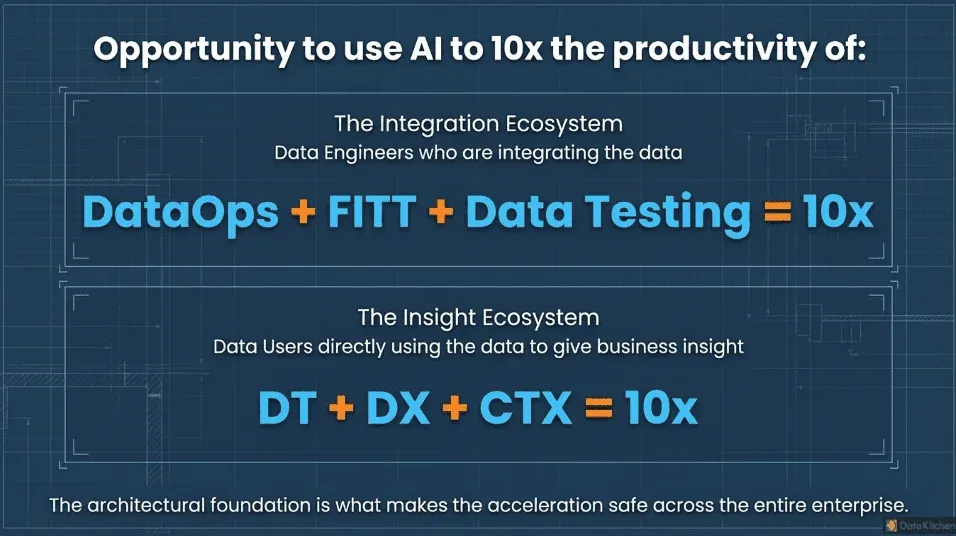 The 10x opportunity from LLMs is not limited to data engineers. Analysts working directly with AI to answer business questions face the same foundational challenge: AI is an amplifier, and if what sits beneath it is untrustworthy, poorly documented, or missing business context, it can amplify bad answers at speed. We have a companion framework for that challenge in The Equation for AI Success: DT + DX + CTX = 10x. Where this post addresses how data engineers build the pipelines that make AI safe and productive, that one addresses how analysts make their data legible, trusted, and context-rich enough for AI to reason over it reliably. The two equations are meant to work together.