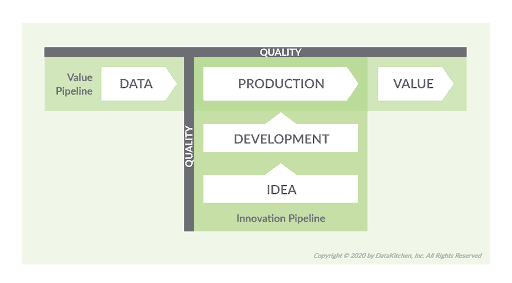 Figure 2: DataOps must orchestrate both the Value and Innovation Pipelines – data operations and analytics development.