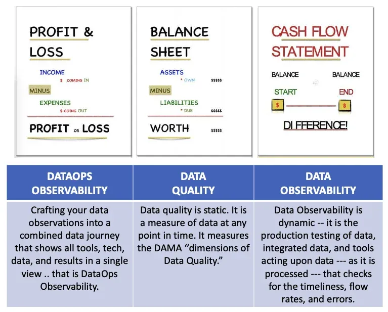 A financial analogy: Data Quality is your Balance Sheet, Data Observability is your Cash Flow Statement