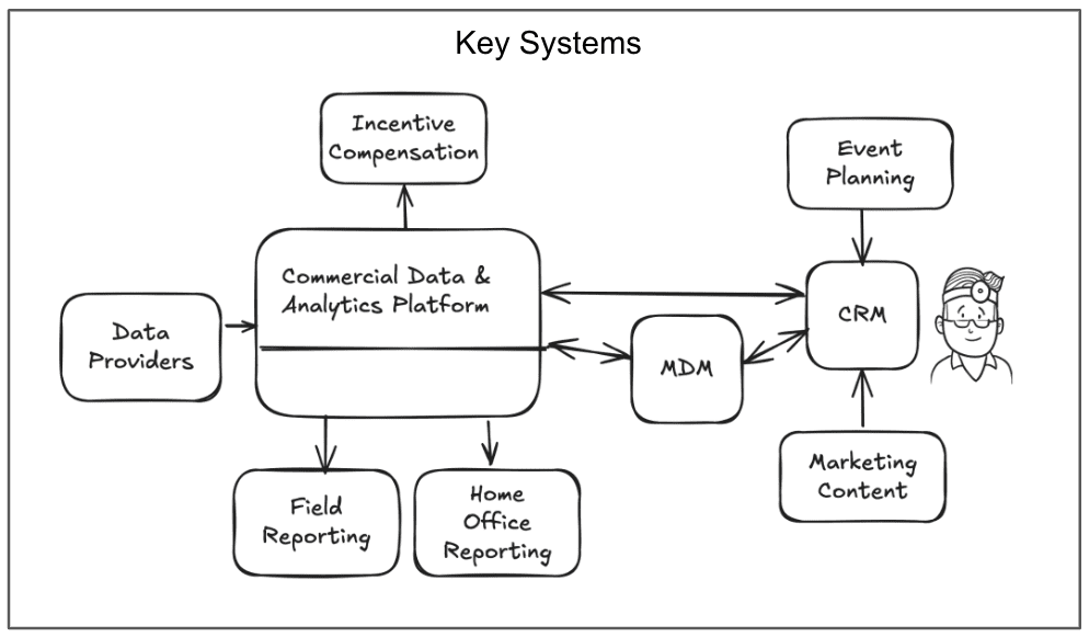 Besides syndicated data, the team needed a variety of specialized systems to support different areas of their commercial operations. A Master Data Management (MDM) system was vital for managing the list of physicians, with options considered, including IQVIA OneKey, Reltio, and Veeva Network. The company evaluated Constant Contact, Hubspot, and Salesforce Marketing Cloud for customer relationship management. Beghou, ZS, and KMK were contenders for call planning and salesforce design, while Hybrid Health and CVENT were considered for marketing content and event planning. Furthermore, an incentive compensation system was implemented to manage reward structures based on the data in Snowflake that was transformed and quality checked by DataKitchen software. The collaboration of these systems established a comprehensive digital ecosystem for the company’s commercial operations, ensuring every aspect of the marketing and sales journey was data-informed and optimized.
