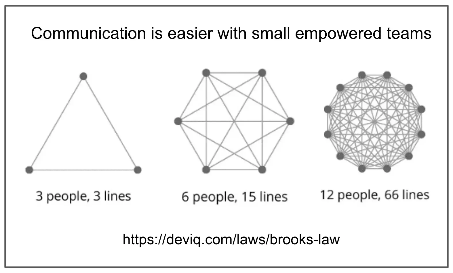 A key success factor was the emphasis on small, empowered teams. Communication was streamlined, which reduced the need for frequent meetings and excessive coordination. Team members knew who to approach for specific tasks or clarifications, enhancing productivity and accountability. This environment encouraged ownership of tasks and was conducive to proactive problem-solving. Remember that communication increases exponentially, (N2 – N)/2, with the number of individuals involved.