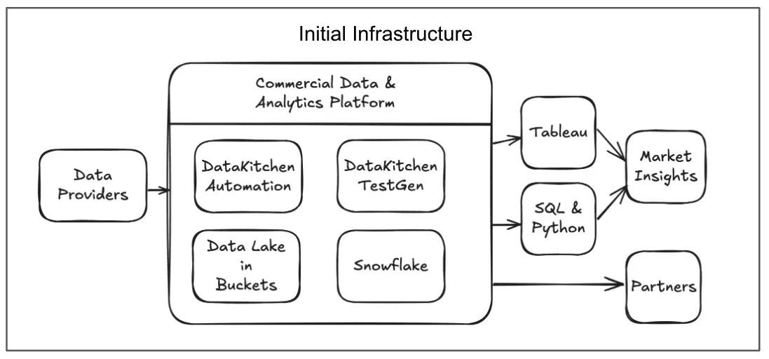 The project began with establishing the data infrastructure. They opted for Snowflake, a cloud-native data platform ideal for SQL-based analysis. AWS Redshift, GCP Big Query, or Azure Synapse work well, too. The team landed the data in a Data Lake implemented with cloud storage buckets and then loaded into Snowflake, enabling fast access and smooth integrations with analytical tools. Once the foundation was set, the team brought in the first one-time data cut, an essential step for early-stage analysis that established the company’s understanding of available insights. This cloud resource setup ensured the team could easily spin up environments, process large volumes of data, and adjust configurations quickly.
