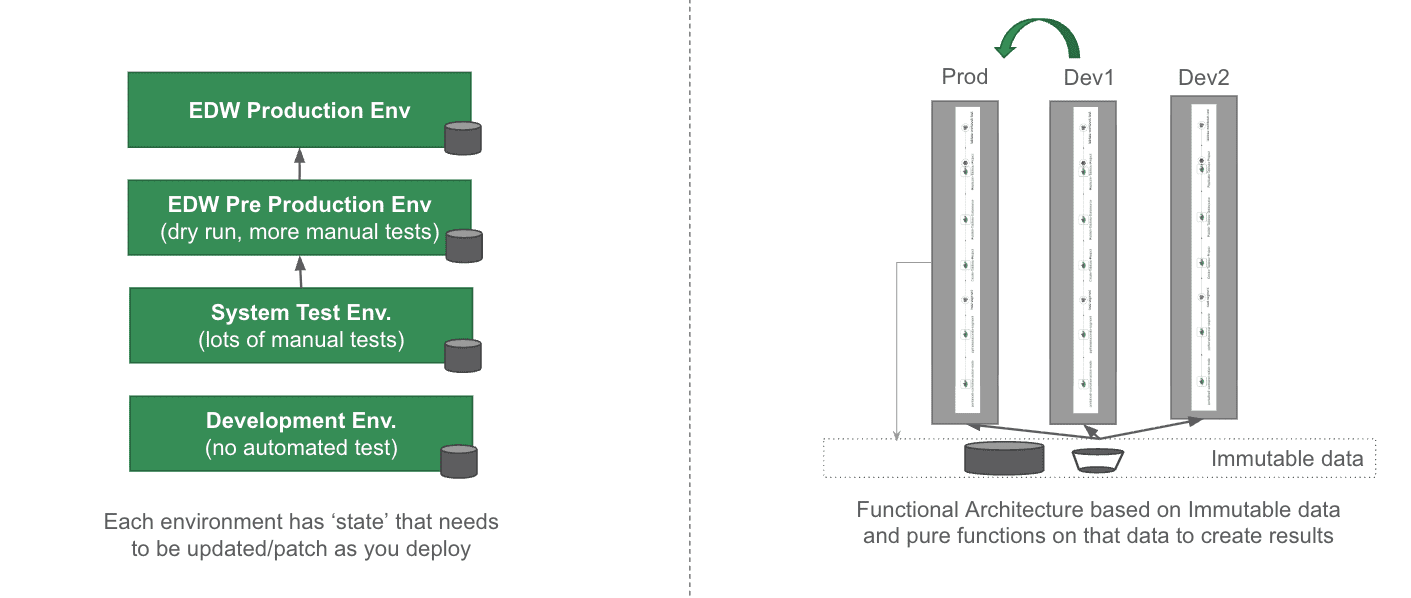 You can even do fancy stuff like blue-green deployments and canary releases without breaking into a cold sweat. This really matters when you have an analyst waiting for a new data set, and you can give them a preview of the entire data set with their new data in parallel to the normal production release. You can get their feedback, test, and learn more about their needs.