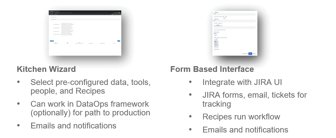 - DataKitchen Kitchen – a workspace that integrates tools, services and workflows