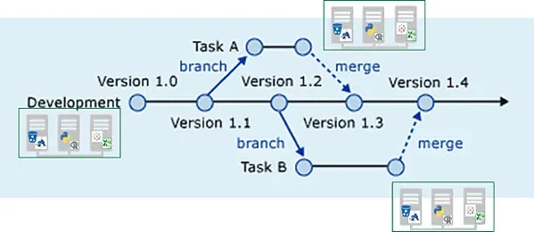 Figure 4: DataKitchen development environments tightly couple to the branches and merges of a source control tree so you can manage all your parallel analytics development efforts.
