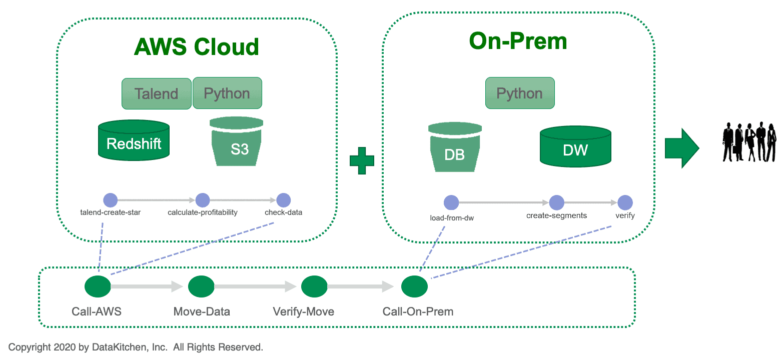 A cloud migration project itself can benefit from a DataOps approach. DataOps is a methodology that applies Agile Development, DevOps and lean manufacturing to analytics to maximize business agility. DataKitchen provides a DataOps Platform that incorporates these principles and automates workflows alongside your on-prem or cloud toolchain. It can help your data organization virtually eliminate errors, minimize cycle time, and enable seamless collaboration of data team members and their stakeholders. DataKitchen is particularly strong in managing data pipelines that span multiple data centers. It can also effectively modularize a toolchain so data pipelines can be migrated one processing stage or tool at a time. DataKitchen enables enterprises to get the most from a hybrid cloud or multi-cloud initiative.