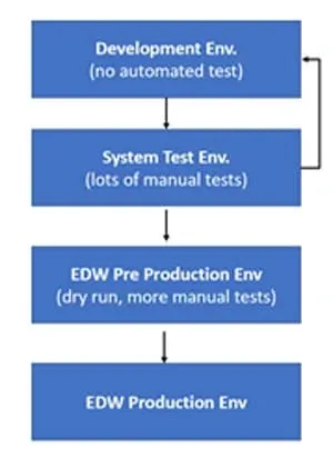 A telecom company needs to increase the rate at which new data features are delivered into production in the EDW. In one past example, it took four months to complete the development cycle from new ideas into production (i.e., to move code from development to production).