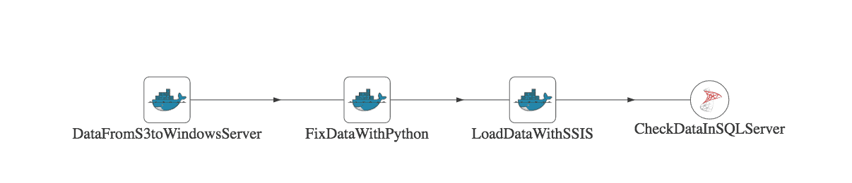 Figure 4: A simple DataOps pipeline is represented by a directed acyclic graph (DAG). Each node in the graph is a sequence of orchestrated operations.