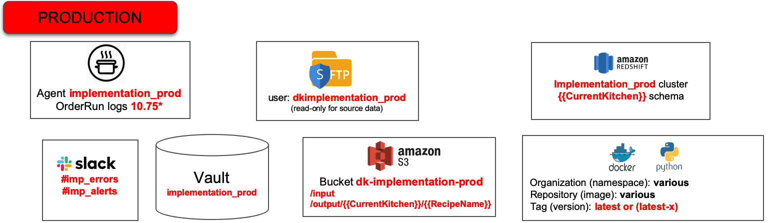 Figure 1 below shows a simplified production environment. The system transfers files securely using SFTP. It stores files in S3 and utilizes a Redshift cluster. It also uses Docker containers and runs some Python. Production alerts are forwarded to a Slack channel in real-time. Note that we chose an example based on Amazon Web Services, but we could have selected any other tools. Our example applies whether the technology is Azure, GCP, on-prem or anything else.