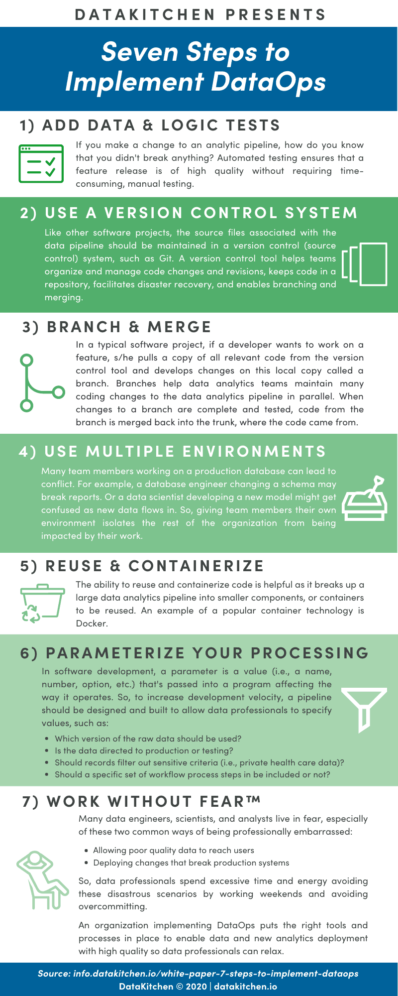 We’ve taken the seven steps to implement DataOps and included them in the infographic below so you can easily share this blog post with your colleagues.
