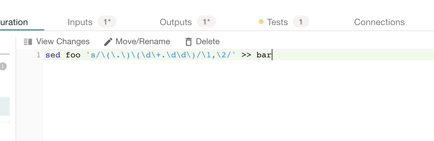 The container can run any code such as a shell or python script. In this case, it runs a Unix sed command, which is an editor that runs on text streams. Team members that are not familiar with sed might look at the command (see screenshot below) and have difficulty understanding it. Also, they may not have access to a Unix machine. With the DataKitchen Platform, this functionality can be easily reused without needing to understand code internals or application environment configuration.