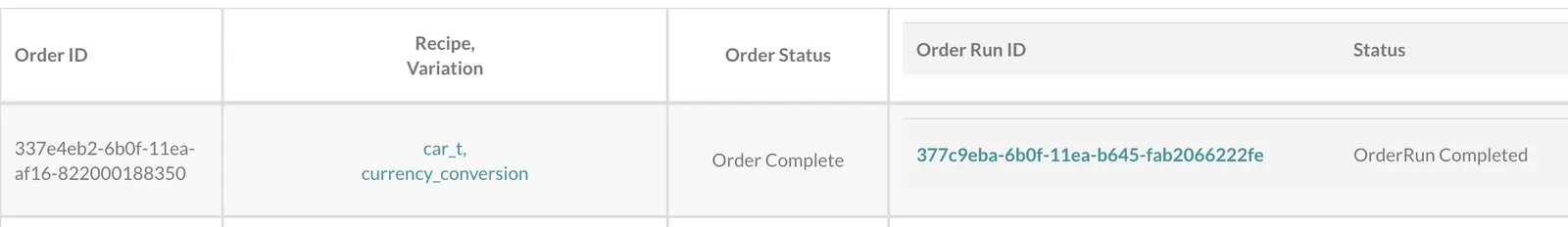 Figure 8: The DataKitchen UI enables the user to execute orders, which are usually orchestrated data pipelines.