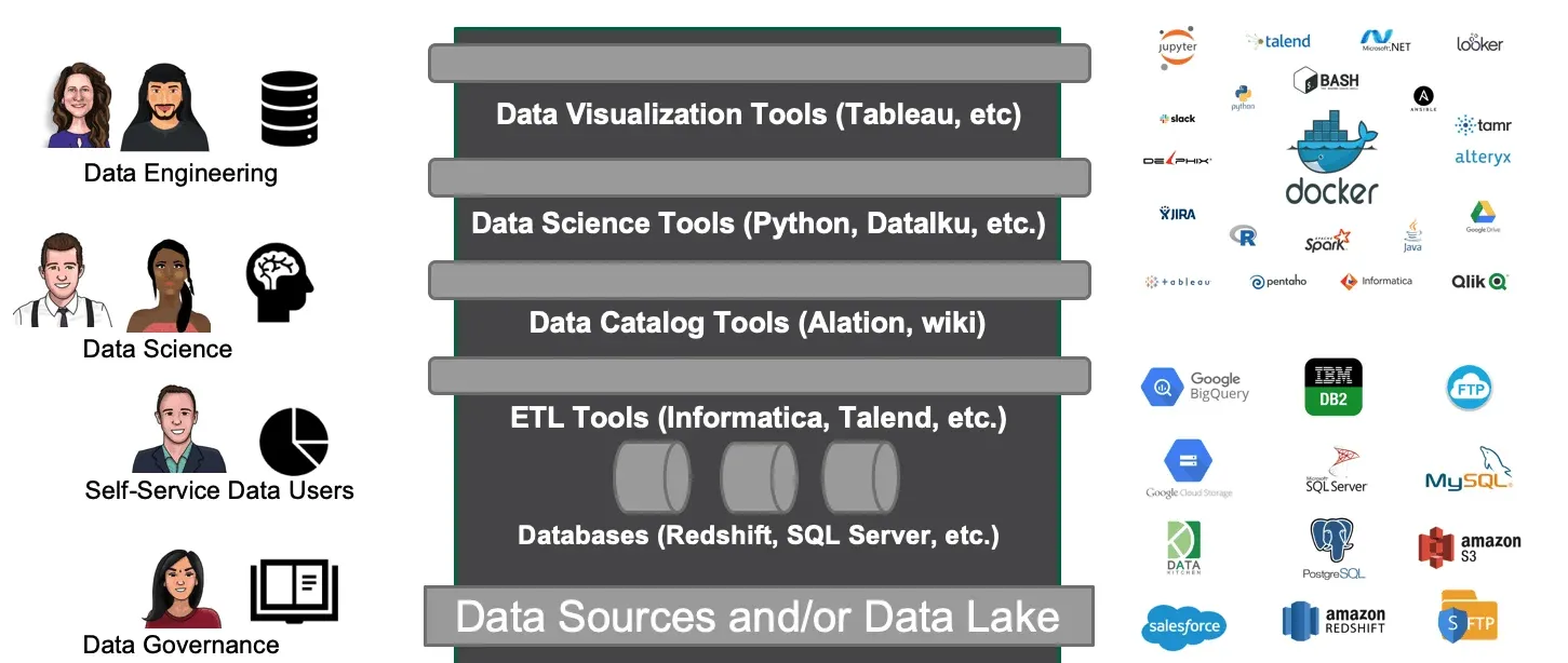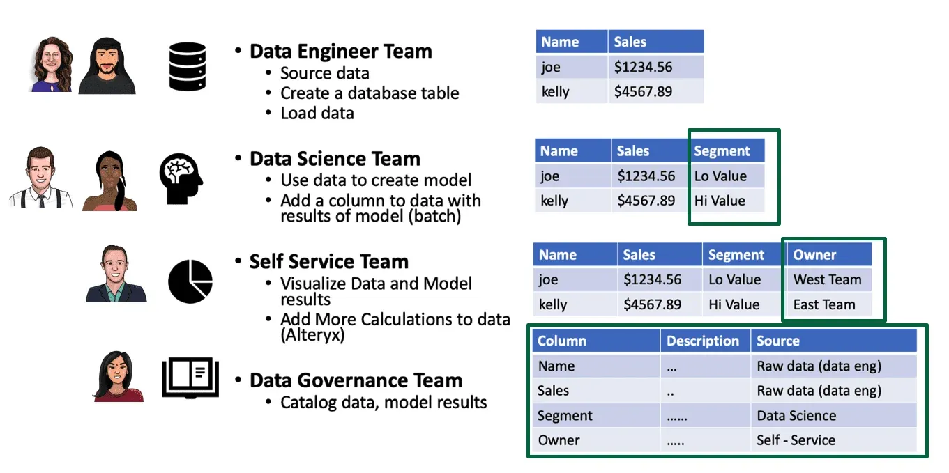 There is a wide range of roles and functions in the data organization of a typical enterprise, that share the mandate to use data in descriptive and predictive analytics. The team includes data scientists, business analysts, data analysts, statisticians, data engineers, architects, database administrators, governance, self-service users and managers. Each of these roles has a unique mindset, specific goals, distinct skills, and a preferred set of tools.