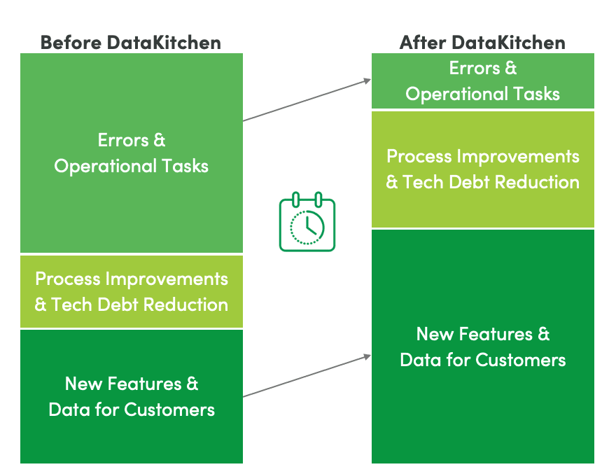 Figure 2: The DataKitchen Platform helps you reduce time spent managing errors and executing manual processes from about half to 15%. Source: DataKitchen