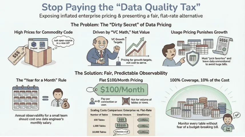 Enterprise data quality and data observability vendors have figured out the perfect scam: charge you more every time you try to do the right thing.