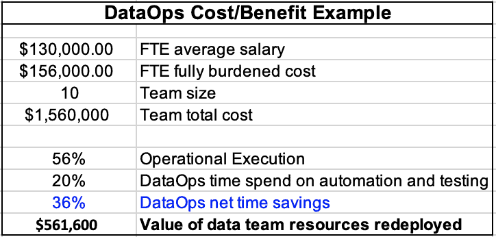 Another way to demonstrate the impact of DataOps on FTEs is by showing the math.