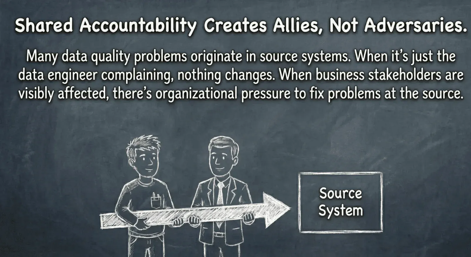 Over time, these collaborative reviews become a feedback loop that improves the entire system. You learn which tests generate false alarms and which catch real problems. You tune the automated checks to be smarter and quieter. You build institutional knowledge about what quality means for your specific data and your specific business. And perhaps most importantly, you build relationships. The business users who once felt like distant judges become partners who understand and appreciate what you’re doing.