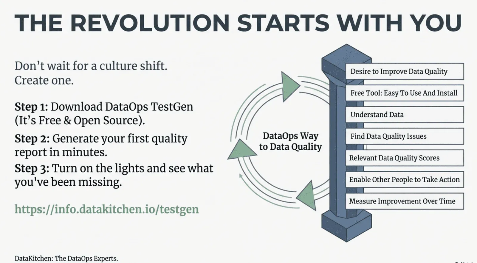 The DataOps Cookbook provides a practical roadmap for implementing these principles. Now in its third edition, the Cookbook explains how DataOps draws on lessons from the software and manufacturing industries to transform data chaos into a single, smooth, efficient process that delivers fast, error-free insight. It covers everything from understanding Data Journeys and implementing observability to building the automated testing and unified orchestration that process-centric teams require. The methodology addresses each of the organizational sins we have discussed: it breaks down silos through shared visibility and collaboration frameworks, eliminates blame culture by making pipelines transparent and accountable, shifts teams from data-centric to process-centric thinking, enables product mindsets through continuous delivery practices, and provides the foundation for true process guardianship.