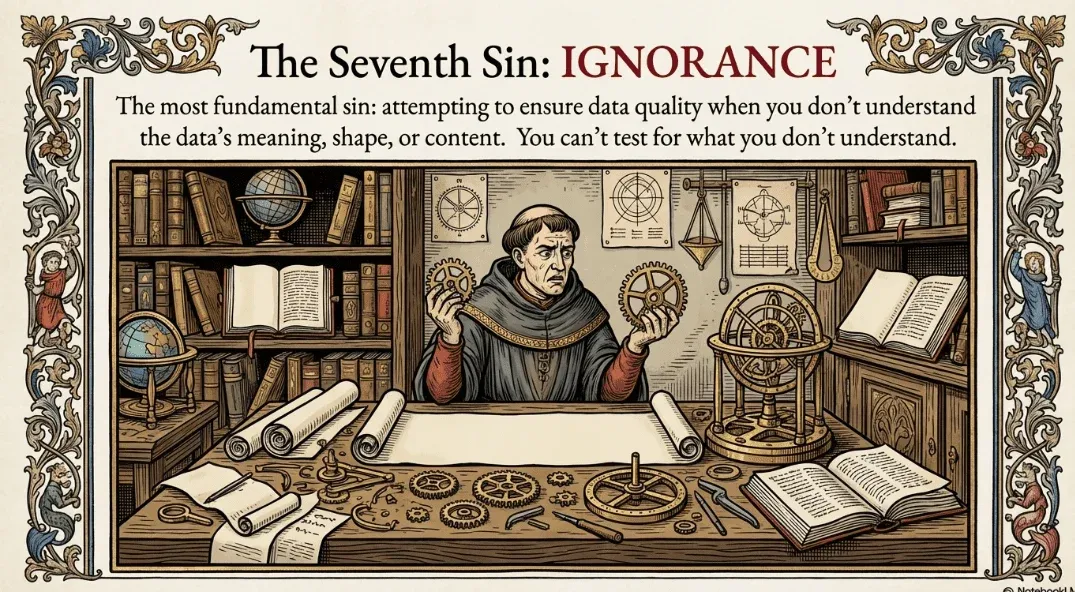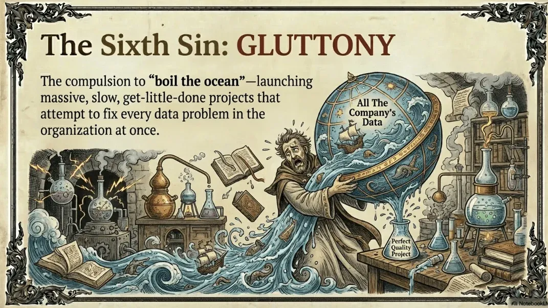 Data quality problems don’t just appear out of nowhere. They fester in organizational cultures where dysfunction becomes normalized, where warning signs are ignored, and where the path of least resistance leads to ever-growing data debt. After years of working with data teams across industries, we’ve identified seven behavioral patterns that consistently undermine data quality initiatives. Like the classical deadly sins, these aren’t simply technical failures—they’re deeply human tendencies that prevent teams from achieving the data quality their organizations desperately need.