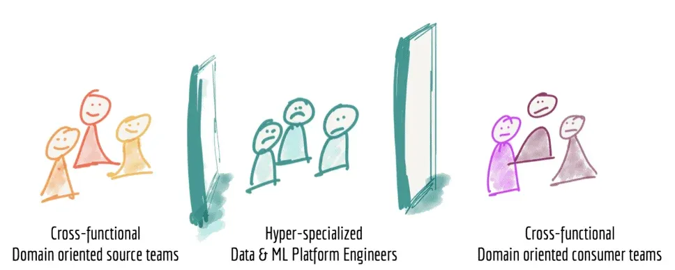 - The team organizes around the domain, not the underlying toolchain or horizontal data pipelines.