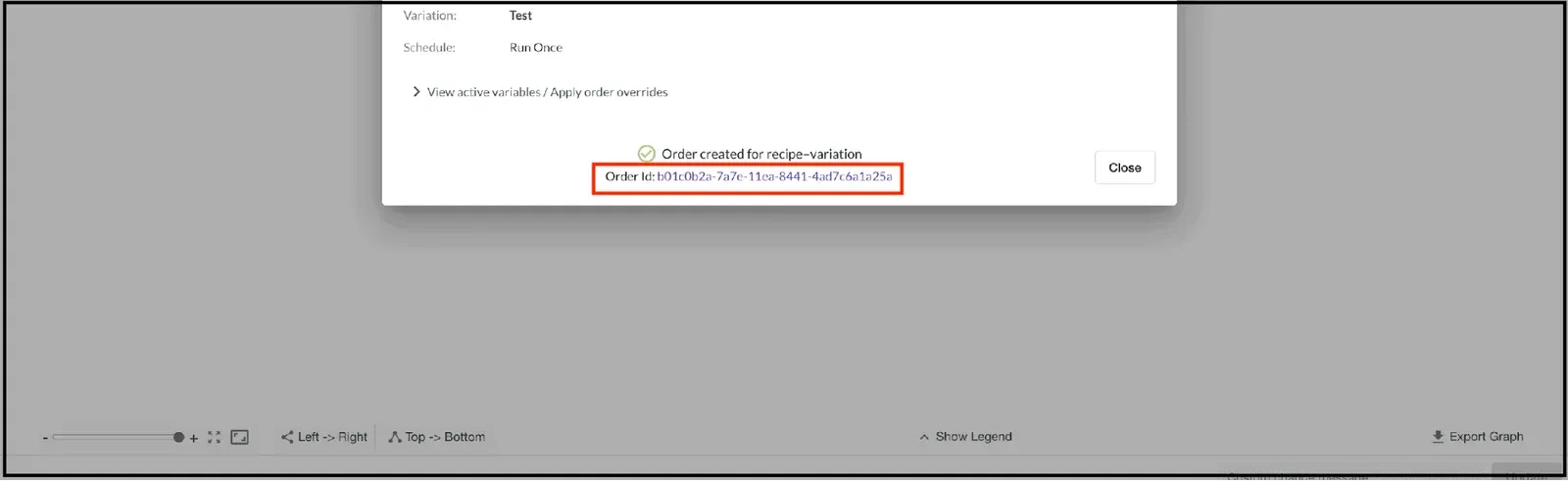 After running the Variation, view Order status by clicking on the ‘Order ID’ link to open the Orders screen.