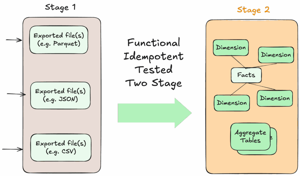 SQL & Orchestration Techniques For Functional, Idempotent, Tested, Two-Stage Data Architectures