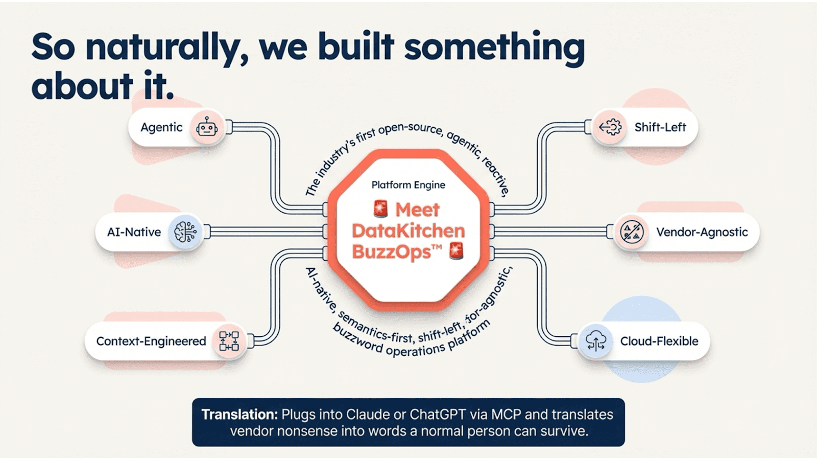 #AprilFools #DataEngineering #DataAnalytics #AI #AgenticAI #ContextEngineering #MCP #SemanticLayer #ShiftLeft #OpenSource #BuzzOps #AIObservability #DataOps
