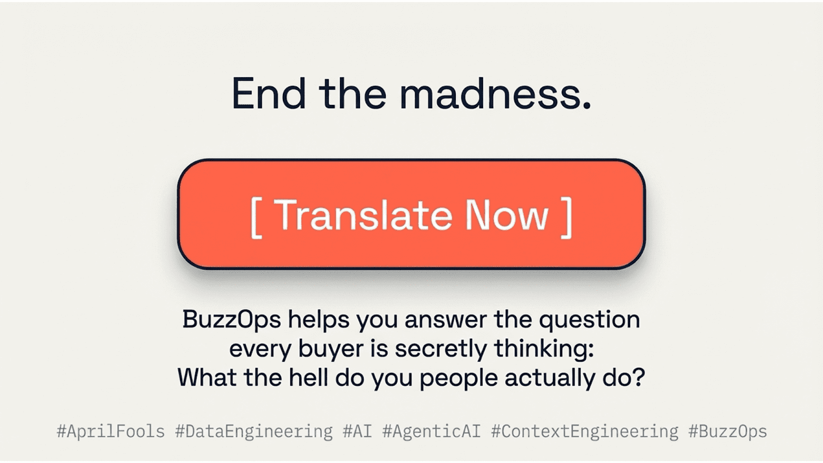 Translation: BuzzOps plugs into Claude or ChatGPT through MCP and translates vendor nonsense into words a normal person can survive.