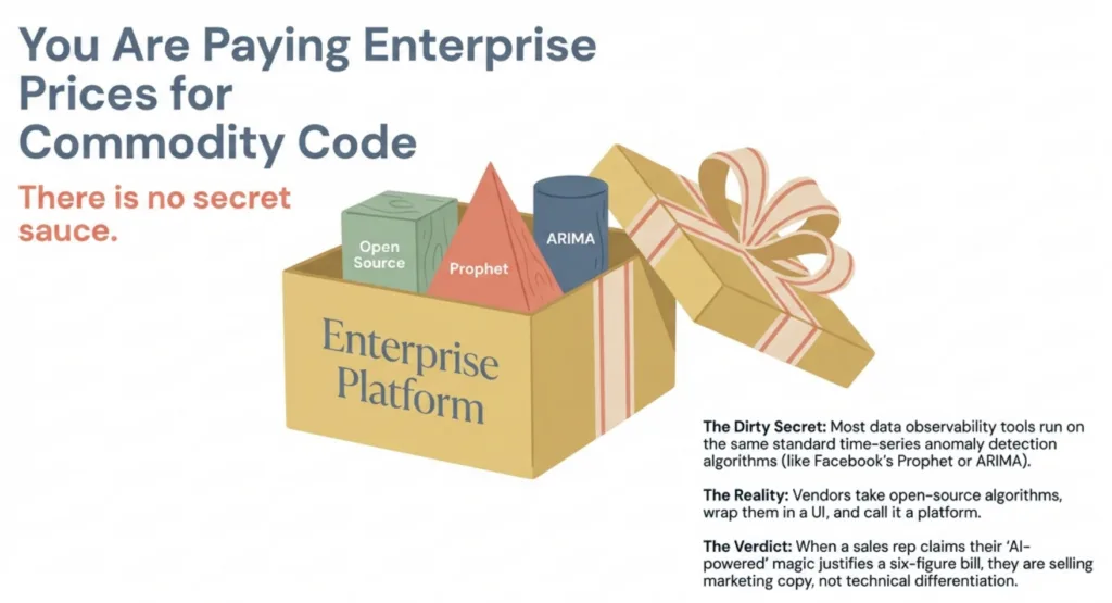 Most of these tools take open-source algorithms, wrap them in a nice UI, and call it a platform. That’s the product. That’s data observability.