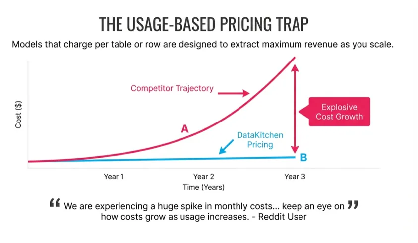 The data engineering community has caught on. As one practitioner warned: “You need to keep an eye on how costs grow as your usage increases.” This isn’t paranoia. It’s pattern recognition from people who’ve watched their bills double and triple.